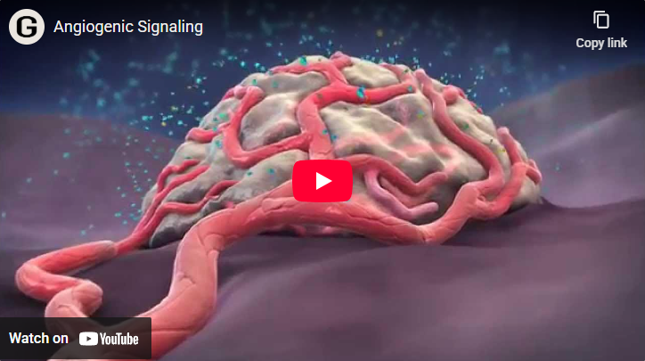 So the tumor can only grow to the extent to which it can surround itself with new blood vessels. This process of recruiting blood vessels is called “angiogenesis”.